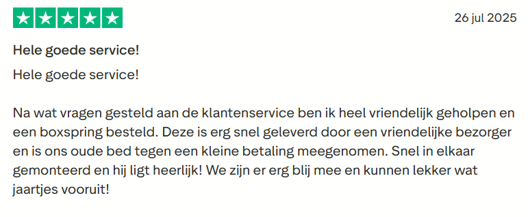 Mocht de montage liever uit handen geven, dan monteren wij de boxspring graag voor u, u kunt dit aangeven in het keuze menu hierboven.