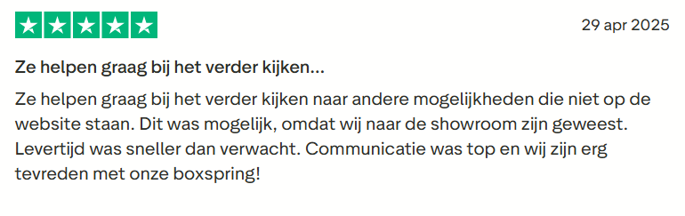 Ben je langer dan 1,85 meter? Dan is een extra lengte boxspring onmisbaar. Met lengtes van 210 cm of 220 cm voorkom je dat je voeten over de rand uitsteken en geniet je van volledige ondersteuning van top tot teen.